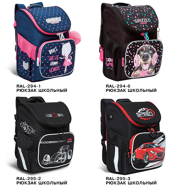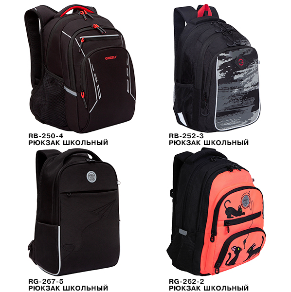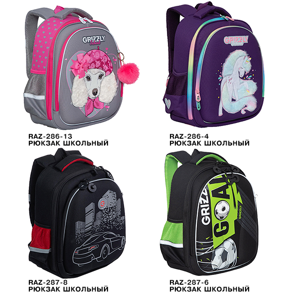 Pour les enfants de 7 à 12 ans, GRIZZLY a conçu une gamme de sacs à dos de la gamme RG (pour les filles) et RB (pour les garçons). Ce sont des sacs à dos scolaires, mais comparés à la ligne RA, ils sont plus fonctionnels. Par exemple, vous pouvez utiliser un sac à dos non seulement à l'école, mais aussi l'emporter avec vous en voyage, etc.