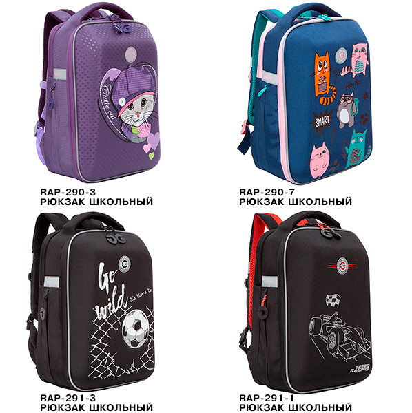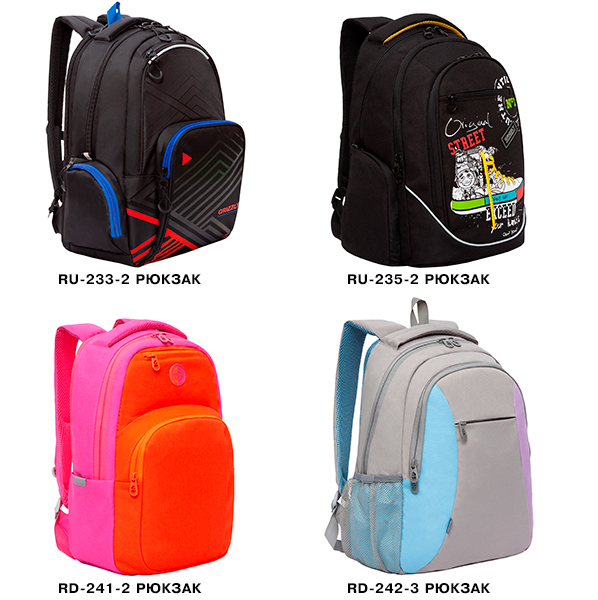 Au sein de ces séries, les modèles diffèrent par leur conception et leur contenu fonctionnel, le nombre de compartiments, ce qui vous permet de choisir un sac à dos qui tient compte de la charge de travail maximale de l'enfant et du but d'utilisation - uniquement à l'école, à l'école et à la section, en voyage, etc.