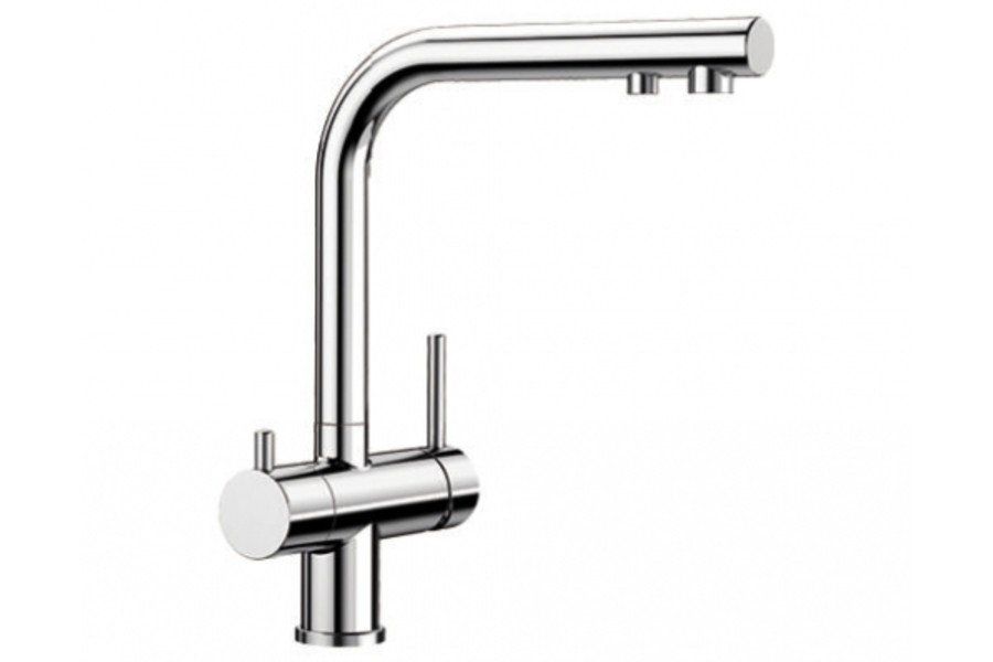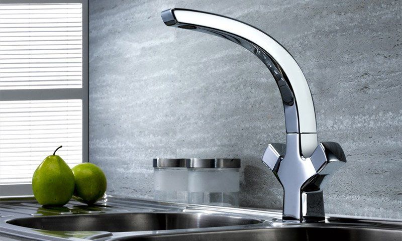 Ce modèle a deux leviers grâce à quoi il est possible de remplir la vaisselle : eau chaude, froide et également filtrée. Pour l'eau potable, le levier gauche est destiné, pour l'eau ordinaire - le droit. Le bec comporte deux trous, dont l'un est destiné à recevoir un liquide ordinaire, le second contient un filtre.