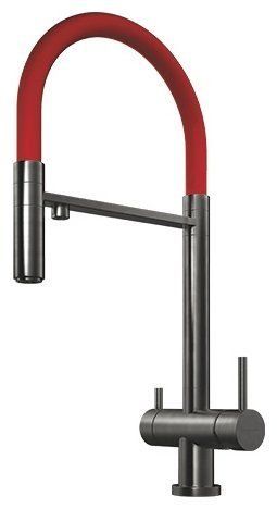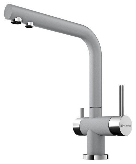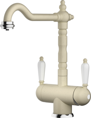 La variante est en laiton avec revêtement en granit. Vous pouvez commander n'importe quelle couleur parmi les cinq présentées. L'aspect classique du bec a une longueur suffisante et d'excellentes dimensions. La poignée est faite d'en haut sous la forme d'un levier rotatif et tourne dans n'importe quelle direction. Lors de l'installation du robinet sur l'évier de la cuisine, vous devrez installer en parallèle un robinet pour l'eau filtrée, ce qui n'est pas très pratique. Le modèle convient si l'évier est de petite taille et qu'un robinet bas est requis. Il peut être utilisé pour le lavabo dans la salle de bain ou dans la salle de bain. Un robinet simple et polyvalent d'excellente qualité peut être acheté sur le marché à un prix avantageux.