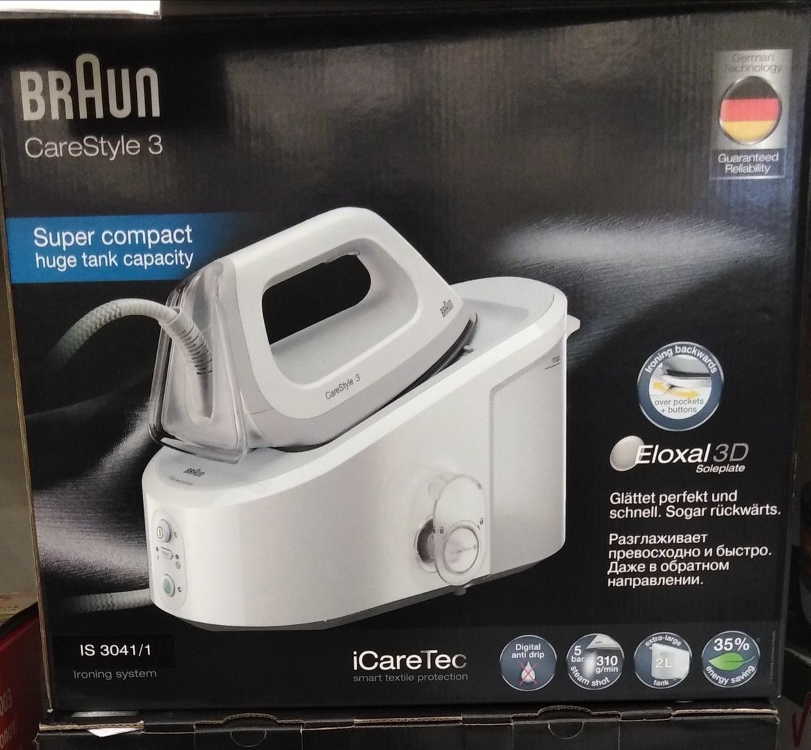 Les femmes au foyer ayant une approche approfondie de l'entretien ménager peuvent vouloir l'IS 3042 WH de Braun. Un tel appareil peut être utile non seulement pour les besoins des ménages, mais également pour les entreprises liées à la vente et à l'entretien des vêtements. La puissance d'un tel système est de 2400 W, le coût moyen est de 12 000 roubles.
