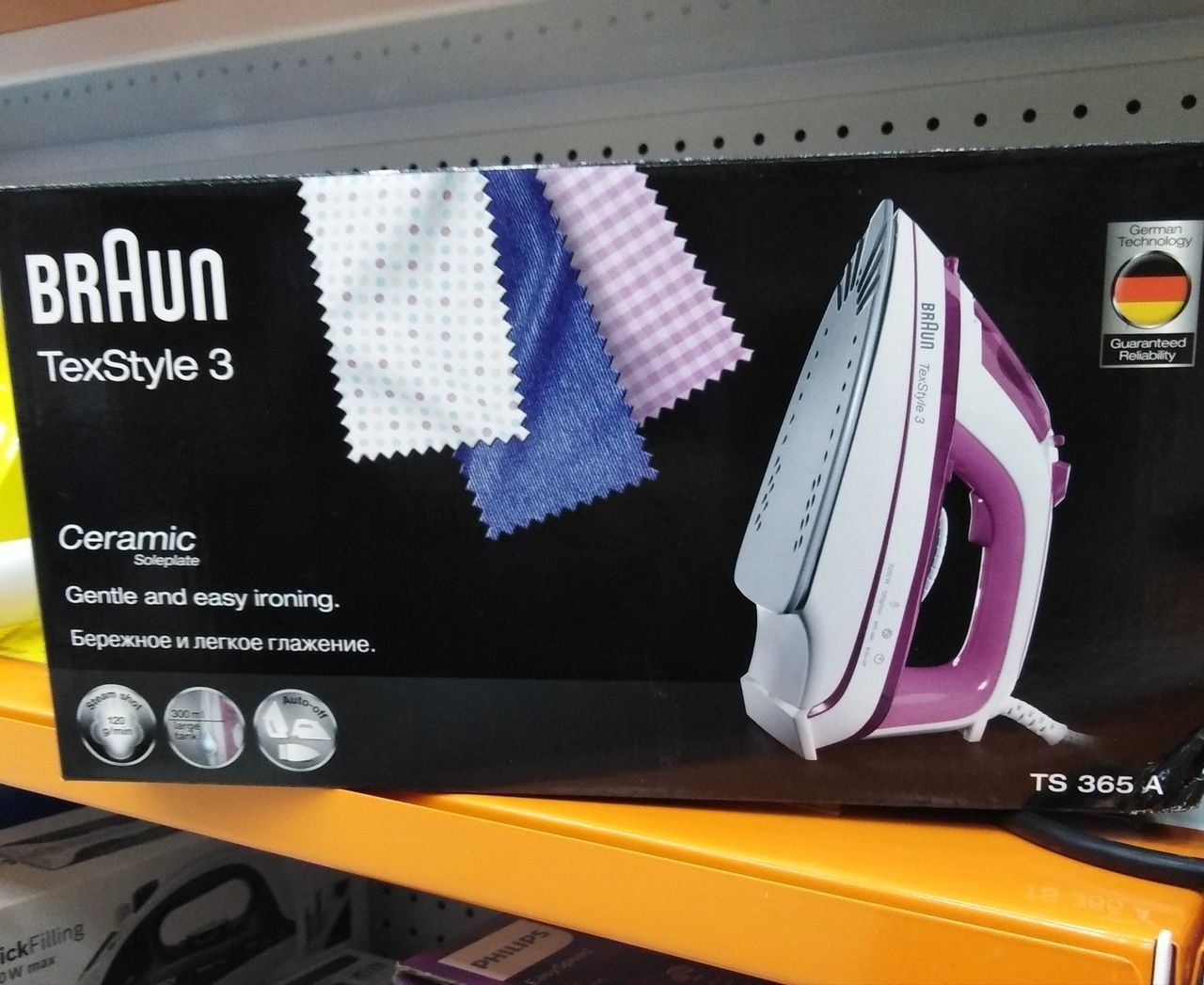 La cote des fers à repasser bon marché de haute qualité de Braun est dirigée par le modèle TexStyle 3 TS365A. Pour seulement 2500-3000 roubles, l'acheteur reçoit un appareil puissant de 2200 W, qui chauffe rapidement et refroidit également rapidement, possède toutes les fonctions de base qu'un fer à repasser moderne devrait avoir et en même temps est relativement léger et attrayant en apparence .