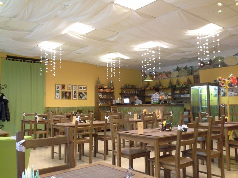 Vous pouvez vous arrêter au Veggy Café pour de la nourriture végétarienne. Plats intéressants, chauds et froids, hamburgers et petits pains, boissons, desserts insolites - c'est le menu du café. La nourriture est décorée de manière appétissante, les produits sont combinés de manière intéressante, les portions sont grandes. Le menu comprend des plats pour les crudivores. Le café est situé dans la zone centrale dans une petite pièce.L'ambiance rappelle celle d'un bistrot, mais le goût des plats laisse une agréable impression d'établissement. Même les mangeurs de viande seront satisfaits. En été, les tables sont dressées directement dans la rue - vous pouvez manger à l'extérieur. L'institution propose une carte bonus cumulable pour les visiteurs réguliers : en fonction du montant cumulé, le pourcentage d'accumulation du bonus passe de 5 % à 15 %.