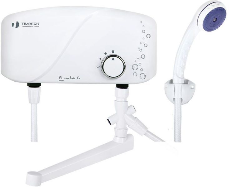 Le débitmètre d'une puissance de 6,5 kW chauffe 4,5 litres d'eau par minute, dispose d'un système de protection contre la surchauffe. Le forfait comprend : un tuyau avec une pomme de douche, un robinet et une prise pour une prise. Parmi les fonctions pratiques - l'appareil limite la température de chauffage et s'éteint automatiquement après l'arrêt de l'alimentation en eau.L'élément chauffant est en cuivre. L'appareil est monté sur le mur horizontalement, avec une connexion inférieure. Si l'alimentation en eau centralisée est en prévention, ce modèle sera un salut lors des journées chaudes. L'appareil a des trous ronds pour le câble - vous devez faire attention à cela lors du choix des fils. Si la cuisine a une cuisinière électrique, la prise convient également pour un chauffe-eau. Lors de la connexion, il est préférable d'utiliser une ligne électrique avec une machine supplémentaire à cette puissance. Selon les avis des clients, WHEL-7 OSC est idéal pour la douche et le lavage, mais si une fille a les cheveux longs, les laver sera quelque peu problématique en raison du tuyau d'arrosage court et de la pression moyenne.