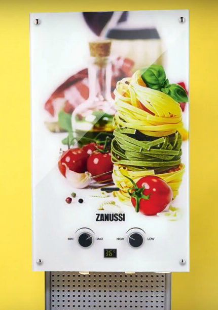 Zanussi GWH 10 Fonte Glass La Spezia, a un motif intéressant qui s'intégrera certainement dans la conception de la cuisine.
