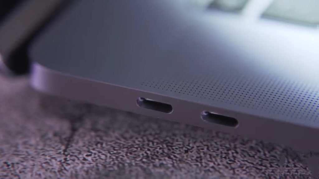 L'augmentation de l'encombrement de l'ensemble n'a en rien affecté l'ajout d'interfaces sur les faces latérales de l'appareil. Il existe le même ensemble de quatre connecteurs Thunderbolt 3, chacun des ports pouvant être utilisé pour établir un contact avec une carte vidéo externe et un chargeur.