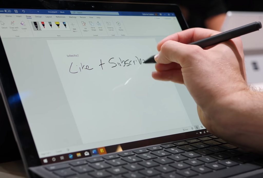 Malheureusement, il n'y a pratiquement rien à décrire ici, car le fabricant a rendu tous les ordinateurs portables de la série presque identiques (à l'exception de la taille) et similaires aux modèles précédents. Les fonctionnalités du Laptop Pro 7 incluent un travail plus confortable avec le stylet Surface, qui vous permet de travailler avec des feuilles de calcul et des éditeurs graphiques à un nouveau niveau sans aucun retard ni blocage, ainsi qu'une fonctionnalité intéressante sous la forme de reconnaissance de l'écriture manuscrite à partir du boîte.