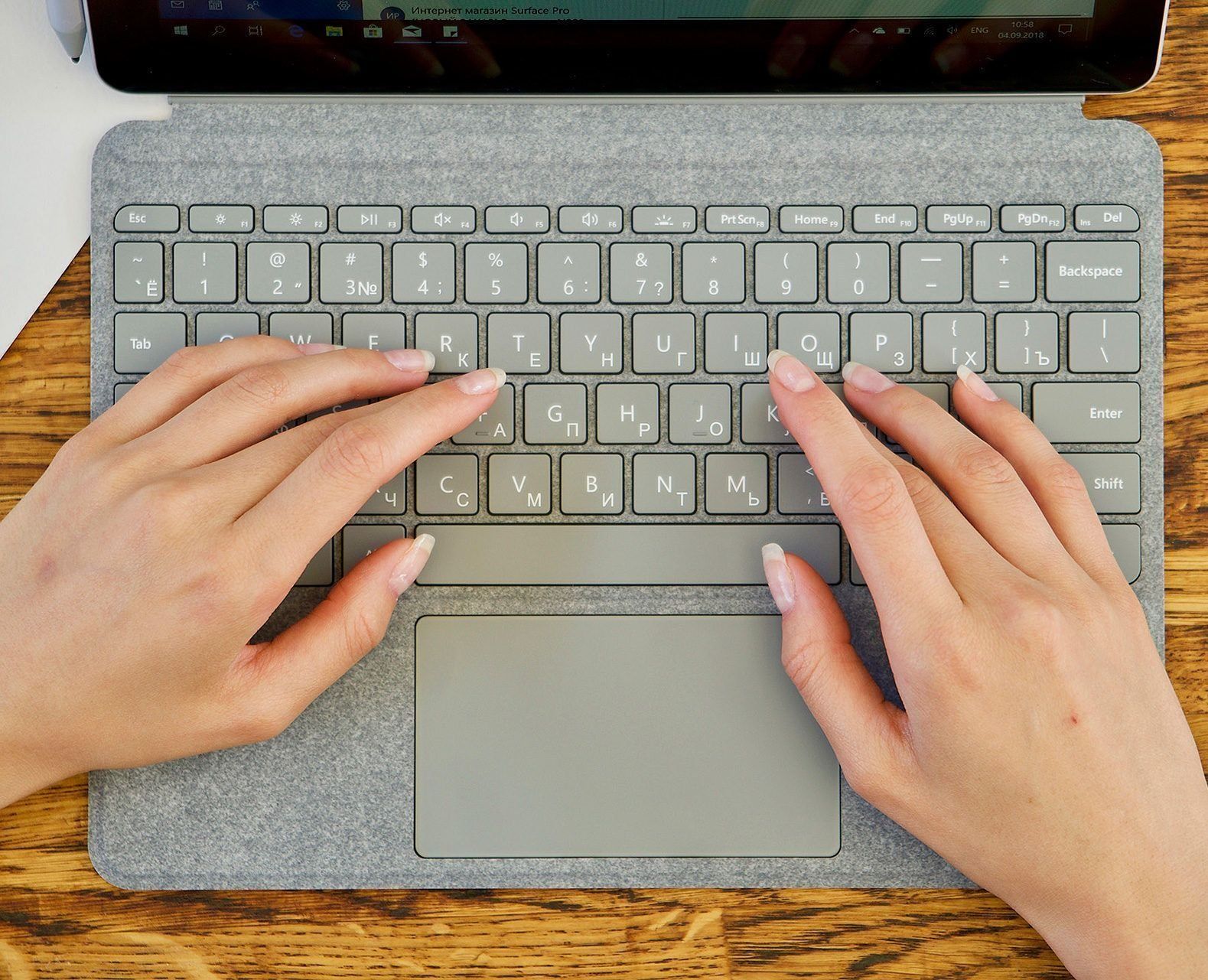 Il existe toutes les méthodes de saisie habituelles. En appuyant avec les doigts, le stylet, etc. Le stylet fonctionne exactement de la même manière. Comme dans d'autres modèles similaires de Microsoft. Le stylet est acheté séparément de l'écran lui-même et du clavier. Son coût atteint 100 dollars. Mais, selon les sondages, il n'est pratiquement pas nécessaire si vous pouvez contrôler l'appareil en appuyant sur votre doigt.