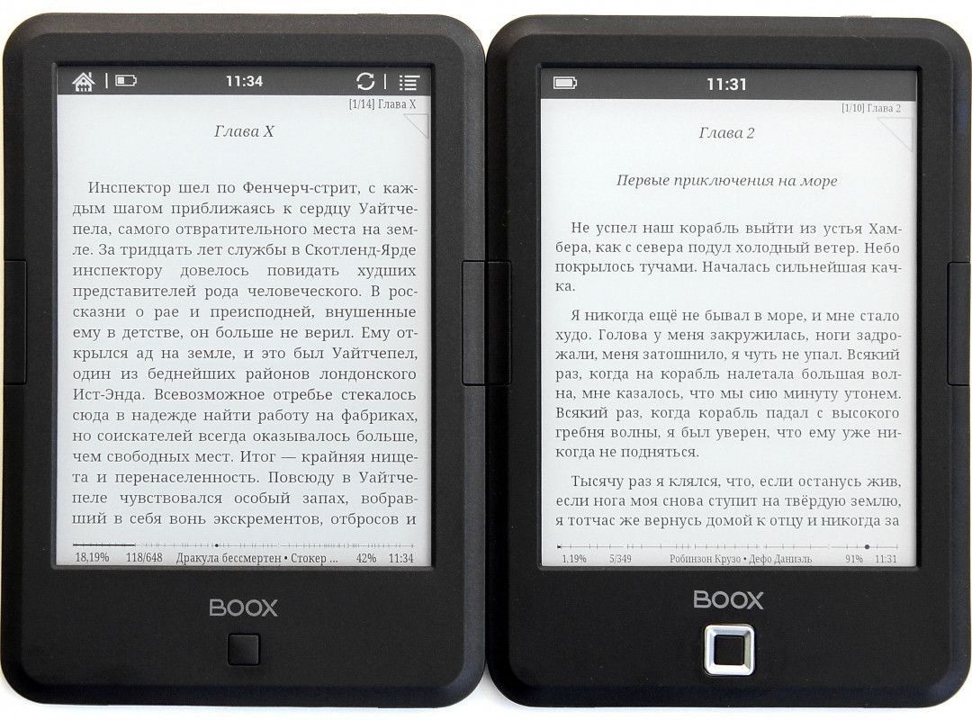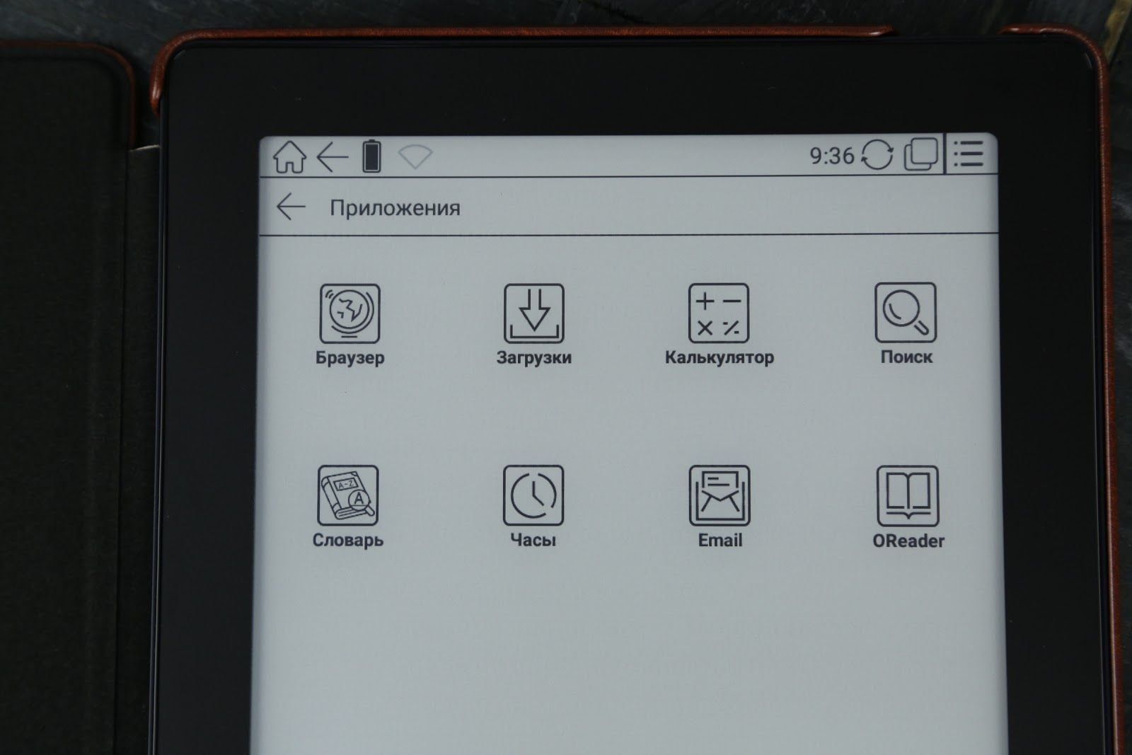 Une caractéristique d'ONYX Euclid est l'équipement de son propre shell propriétaire avec ses éléments d'interface simples et volumineux caractéristiques, ce qui a un bon effet sur la lisibilité. Étant donné que presque toute la page principale affiche des livres récemment lus, cela donne l'impression d'être dans une vraie salle de lecture.En termes de formats pris en charge, le gadget est très polyvalent - sa liste comprend plus d'une douzaine d'extensions de texte, trois extensions graphiques, ainsi que PDF et DjVu.