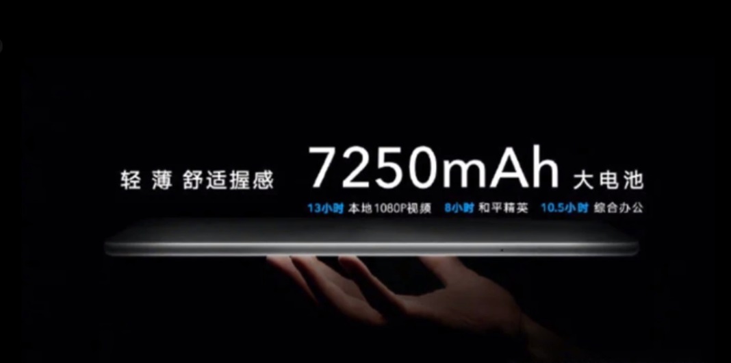 La capacité déclarée de la batterie lithium-polymère non amovible est de 7250 mAh, ce qui est vraiment beaucoup pour une tablette avec un grand écran énergivore et un processeur puissant.
