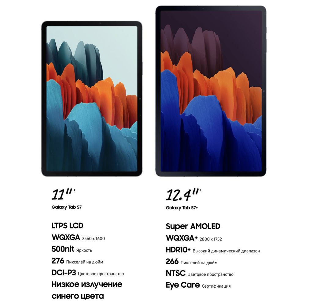 Le 5 août, Samsung a annoncé les tablettes phares Galaxy Tab S7 et S7+. Les modèles sont presque identiques tant dans les caractéristiques techniques que dans la conception du boîtier. Les principales différences - l'ancienne version a reçu un écran plus grand avec une matrice Super AMOLED, au lieu d'IPS, et une plus grande capacité de batterie - 10090 mAh contre 8000 mAh pour la plus jeune.