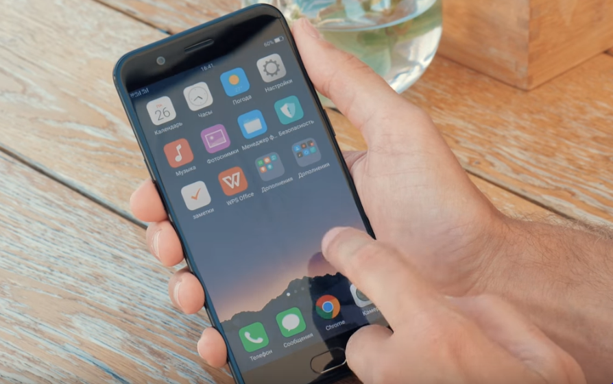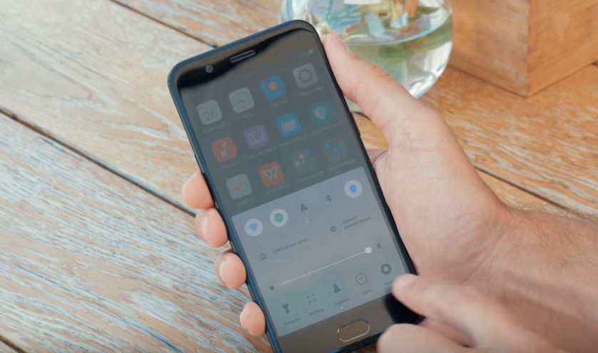 En outre, un déverrouillage est intégré au panneau avant - un scanner d'empreintes digitales, complété dans le modèle OPPO R11 par plusieurs capteurs, de sorte qu'il fonctionne instantanément lorsqu'il est pressé. Près de lui se trouvent deux touches tactiles. Il y a un revêtement oléophobe, mais il n'est presque pas perceptible. Pour qui cet article est essentiel, il vaut la peine de coller un film spécial ou un verre de protection sur l'écran.