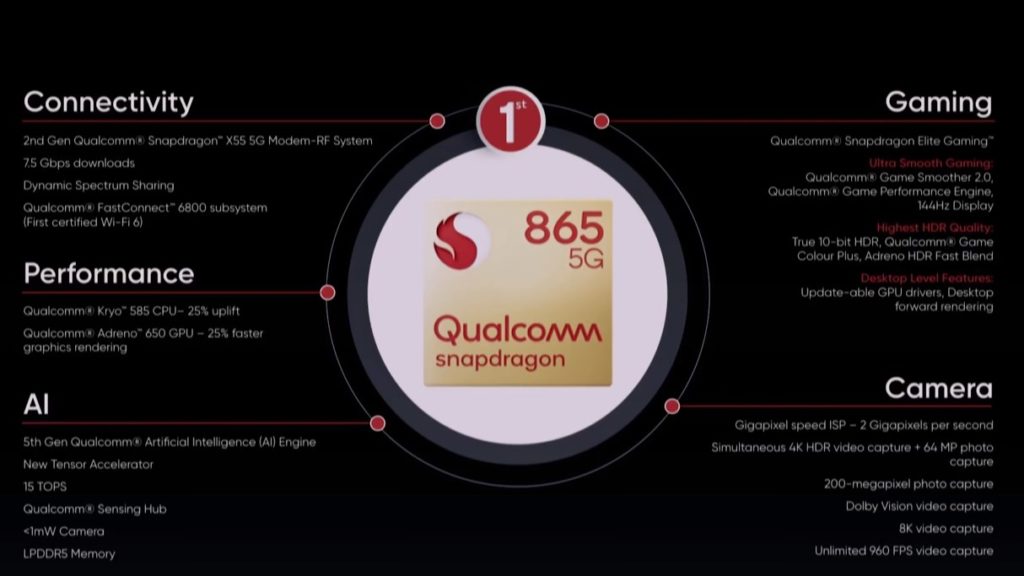 | CPU | Snapdragon 865, 7 nm, Adreno 650 |