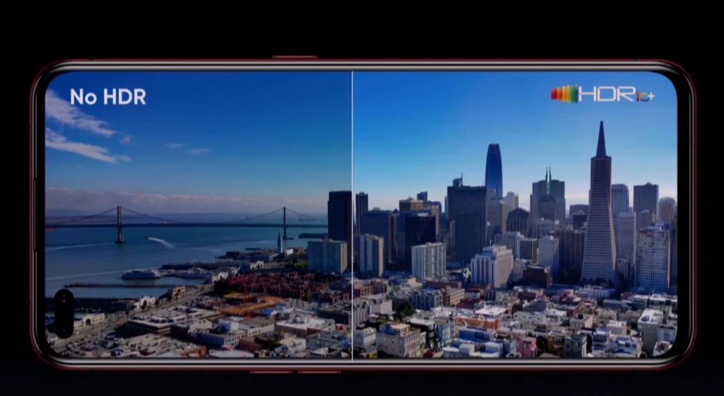 Le téléphone est équipé d'un écran tactile super AMOLED avec une résolution de 1080 x 2400 pixels, un ratio de 20:9 (densité ~ 409 ppi). Au soleil, il continue de maintenir une luminosité élevée.