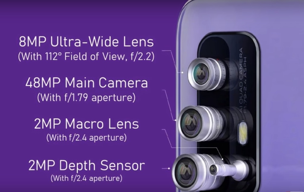 Il dispose de quatre caméras arrière avec une résolution allant jusqu'à 48 mégapixels, il y a la possibilité de prise de vue panoramique. Il y a l'autofocus. Prend 30 images par seconde lors de la prise de vue vidéo. Résolution : 1080p ou 2160p, cette dernière répond à la norme 4K - un nouveau format conçu pour la cinématographie.Le nombre indique la capacité de séparation verticale. La caméra frontale n'a que 1080p, 16 mégapixels.