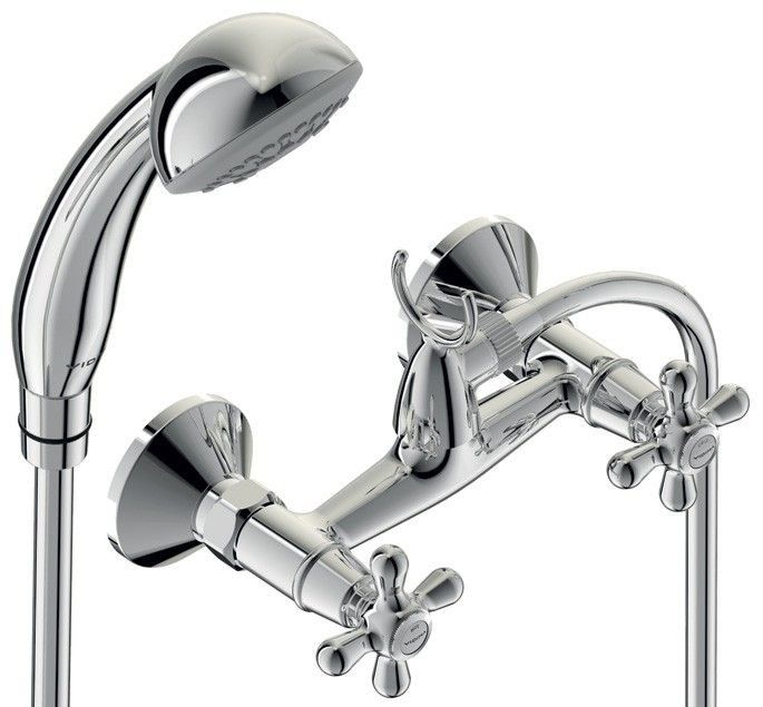 Mitigeur de bain à double levier dans un charmant style rétro. La fixation pour l'arrosoir est située sur le corps, ce qui donne au modèle une ressemblance supplémentaire avec les robinets vintage. Comme dans les modèles précédents, le boîtier est en laiton. La pression de l'eau est régulée par une manivelle en céramique avec un tour de 1800.