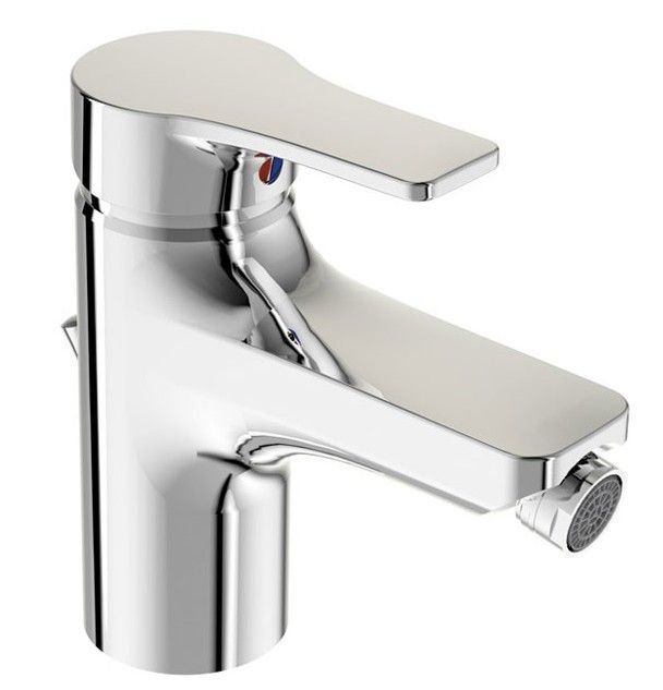 Modèle de bidet à levier unique avec système d'installation facile. Le bec coulé est équipé d'un aérateur Cascade sur rotule.