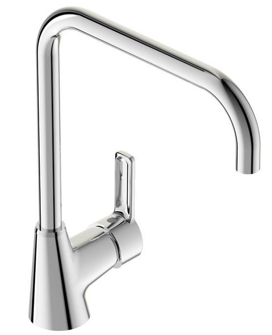 Mitigeur d'évier monocommande avec bec haut (245 mm) et angle de pivotement jusqu'à 3600. La forme simple mais en même temps moderne du bec rend le processus de lavage de la vaisselle très pratique. Buse d'aération incluse. Le corps et le bec sont en laiton. Le mélangeur est installé sur l'évier. Il y a un système de fixation renforcé.