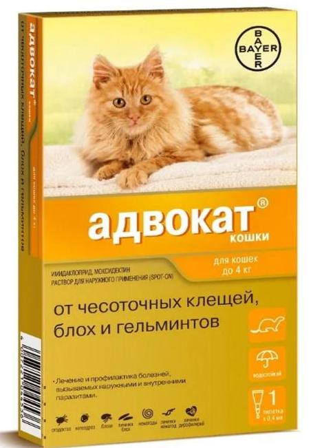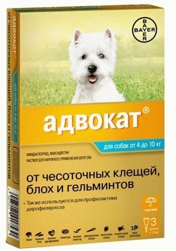 Préparation pour petits animaux de 4 à 10 kg, à partir de 7 semaines (convient aux chatons). Il est utilisé pour traiter et prévenir les vers, les piqûres d'insectes et les parasites. Le volume nominal de l'ampoule est de 1 ml, qui dans sa composition comprend 10% de fipronil et 2,5% de moxidectine - ingrédients actifs, ainsi que des composants auxiliaires: alcool isopril, diméthylsulfoxyde, polyéthylène glycol. Durée d'action - 2 mois. La durée de conservation des marchandises est de 5 ans.