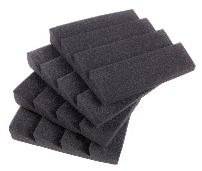 Pour éliminer le bruit aux basses fréquences, des plaques de mousse de polyuréthane épaissies sont utilisées. Ils sont appelés bass cubes ou traps. Cependant, ce serait une erreur de supposer que le matériau en question est capable d'atténuer complètement les basses fréquences. Il ne peut que "couper" leurs "extrémités" dans l'espace et supprimer les réflexions des signaux parasites. Dans les coins de n'importe quelle pièce, les basses fréquences sonores sont concentrées, c'est pourquoi elles atteignent l'oreille humaine avec un retard, et les pièges à basses sont conçus pour éliminer ces accumulations à faible énergie. Dans le même temps, la texture de la mousse elle-même n'est pas importante pour le piège à basses - les dimensions des panneaux de matériau dépendront des paramètres des locaux et du résultat obtenu à la fin.