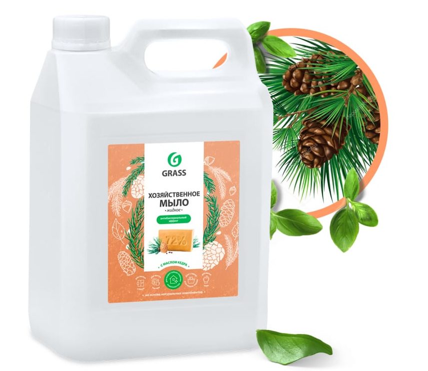 Une autre version de savon liquide, produite sous forme de concentré, est conditionnée en bidons de 1 et 5 litres. La formule améliorée du produit comprend de l'huile de cèdre, qui a un effet antibactérien. GraSS supporte tous les types de salissures, y compris les taches grasses. Il peut être utilisé à la fois à des fins domestiques et hygiéniques. Sans danger pour les personnes, les animaux et l'environnement. Avant utilisation, diluer selon les instructions sur le flacon.