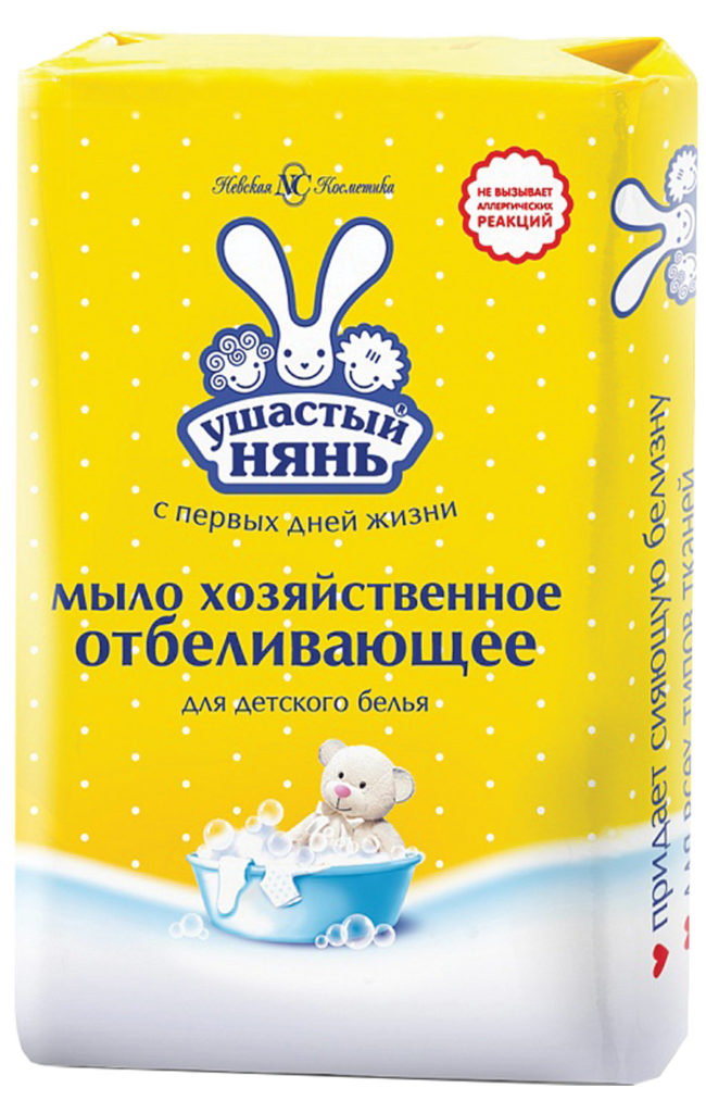 "Eared Nanny" a été créé pour les sous-vêtements pour enfants, résiste à presque tous les types de pollution, y compris les protéines. Soap Eared Nian comprend un complexe d'acides gras, de graisses animales, d'enzymes et de glycérine, qui a un effet bénéfique sur la peau. L'absence de parfums et de divers additifs agressifs le rend hypoallergénique et idéal pour laver le linge de bébé dès la naissance. La composition convient à tous les types de tissus, ne dessèche pas et n'irrite pas la peau.
