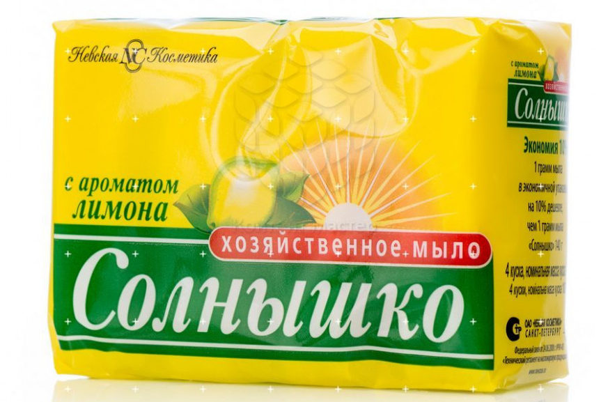 "Sun" diffère de la plupart des produits similaires en ce que certaines espèces contiennent divers extraits de plantes. En vente il y a un "Soleil" à la camomille, au citron et à la pomme. La présence de parfums masque presque complètement l'odeur naturelle et souvent désagréable du savon à lessive. L'outil fait face à divers types de pollution, mais nécessite un petit effort lors du lavage des mains. Pour préserver la douceur de la peau des mains, les fabricants ajoutent de la glycérine, qui adoucit le milieu alcalin.