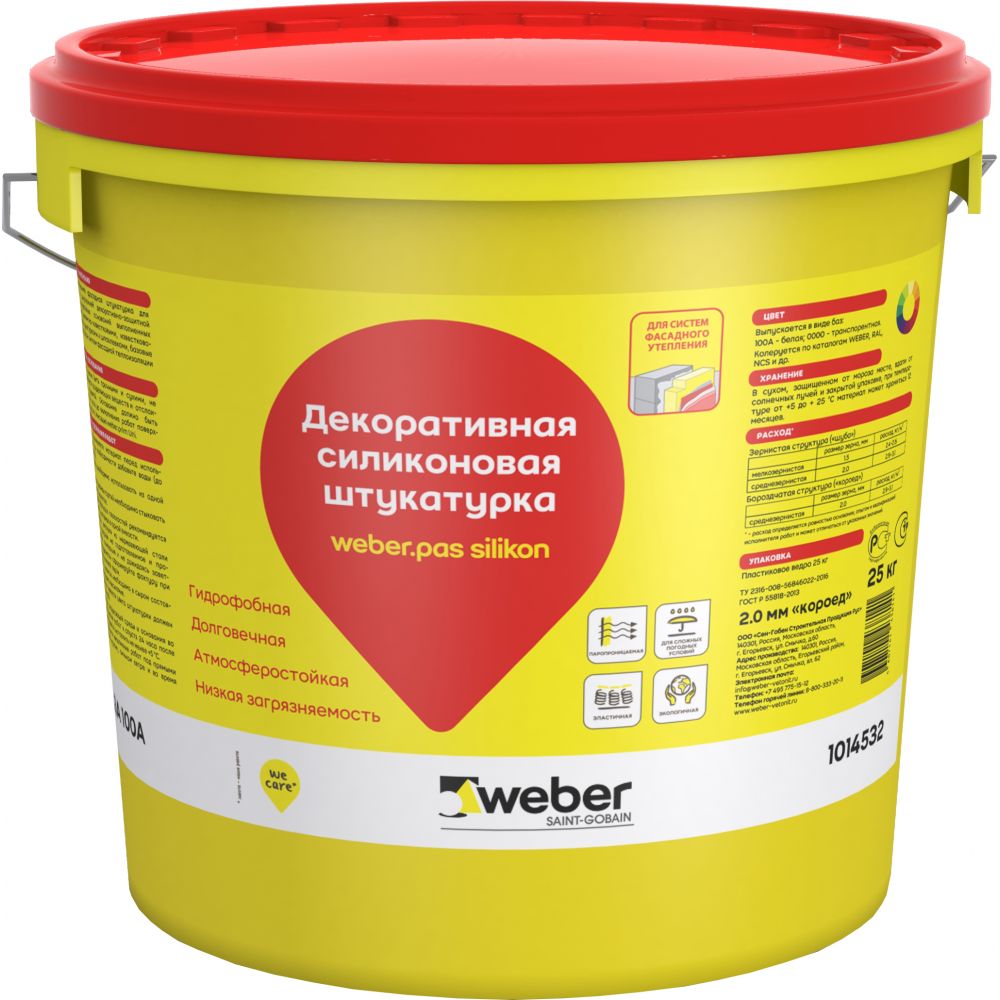 Petit-relief à texture caillouteuse (taille de fraction 2,5 mm), universel. Convient pour la décoration extérieure et intérieure. Parfaitement appliqué sur une base pré-préparée de béton et de cloisons sèches, ne se fissure pas, facile à nettoyer.