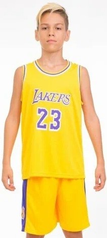 Le maillot de basketball enfant NBA est composé à 100 % de polyester. Il s'agit d'un kit peu coûteux pour l'entraînement et les jeux. Le costume se compose d'un short confortable avec triple élastique et d'un t-shirt sans manches.Le matériau ne provoque pas d'allergies. Design moderne. Chiffres et lettres sont collés. Il n'y a pas de patchs supplémentaires et de logos brodés sur l'uniforme.