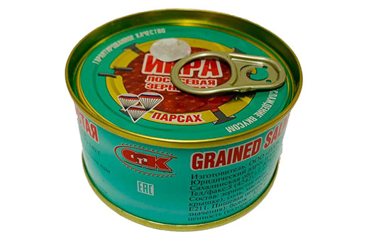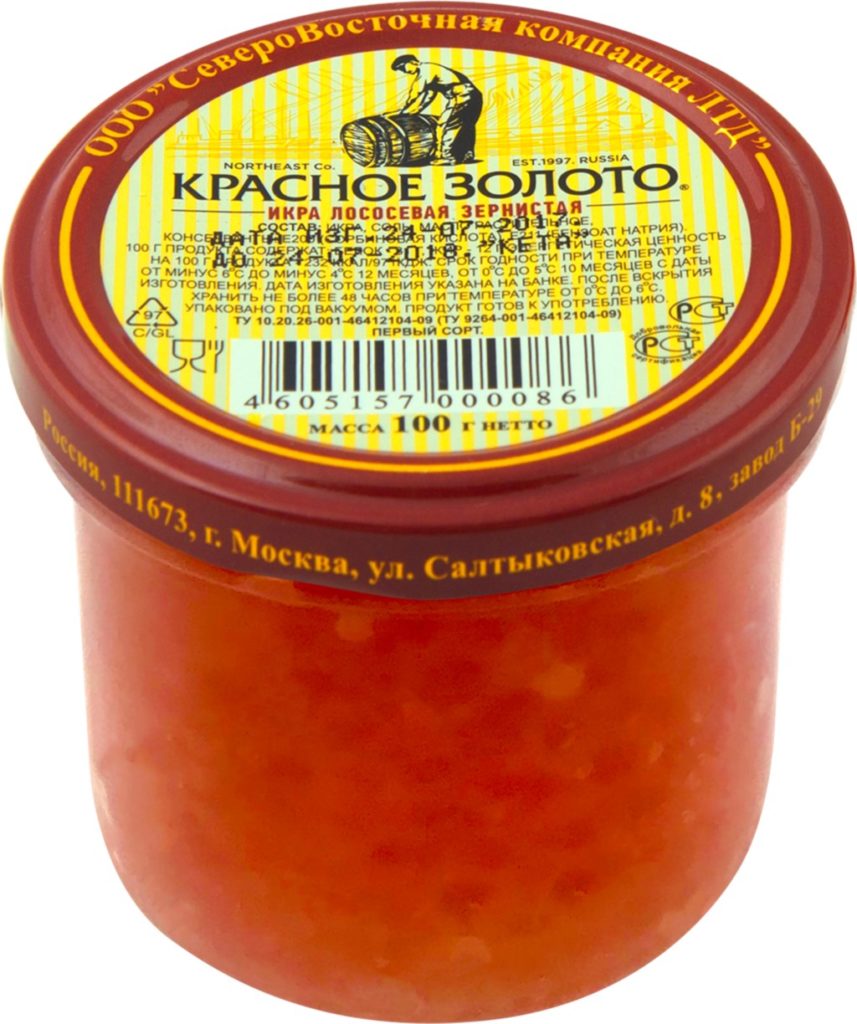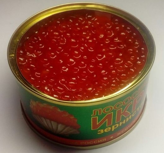 Produit délicieux, modérément salé, n'a pratiquement pas d'œufs éclatés. Pas d'odeur forte, goût agréable. Les indicateurs microbiologiques répondent aux exigences établies. Pays d'origine : Russie. Prix moyen : 400 roubles.