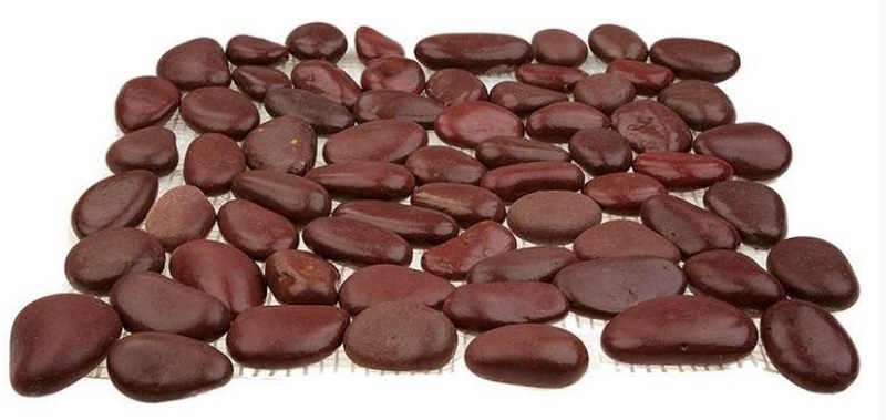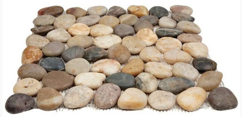 Le matériau en question est fabriqué à base de pierres naturelles, en les traitant (ou leurs fragments individuels) à la taille requise, tout en leur donnant simultanément les nuances de couleur souhaitées. Le plus souvent, une mosaïque de galets est constituée de blocs individuels collés sur un treillis de construction en fibre de verre. La substance adhésive appliquée résiste avec succès à l'humidité, ce qui permet la pose d'ornements en galets dans des pièces très humides.