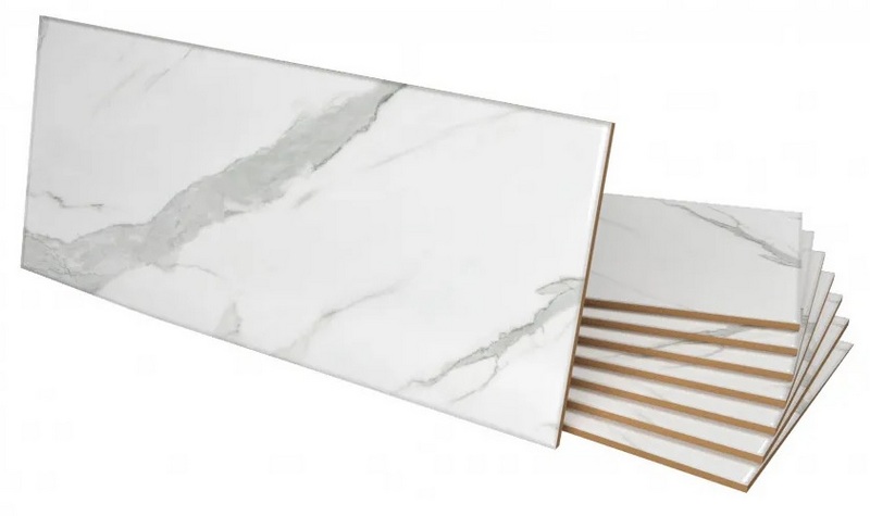 - Avec une texture irréaliste - nous parlons ici d'une imitation visuelle de haute qualité d'un matériau particulier. Le plus souvent, il s'agit de l'imitation du bois et du marbre, lorsque toute la conception de la puce est réduite par le fabricant à seulement une reproduction de mauvaise qualité d'une photographie de marbre/bois à la surface du carreau.