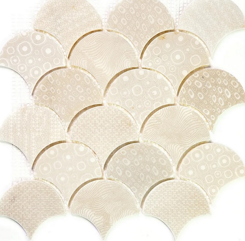 Ce carreau de mosaïque peut être utilisé presque partout : comptoir de bar, chambres, murs, décoration de colonnes, hammams et douches, piscines et baignoires, pour revêtement mural dans la salle de bain, etc.Le décor de la surface des carreaux est marbré, les copeaux sont immédiatement posés sur du papier spécial. Les dimensions et le poids peuvent varier. Le coût recommandé pour les chaînes de magasins est de 2200 roubles.