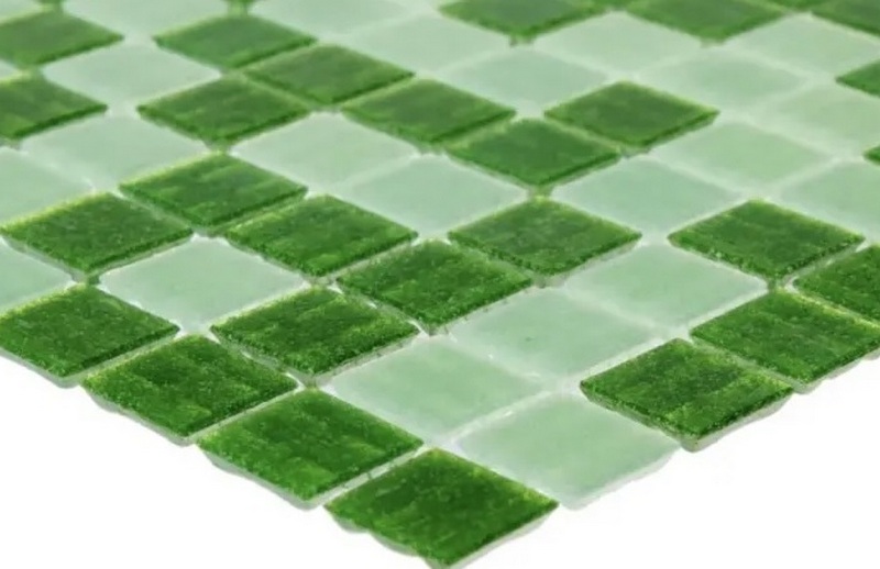 Le produit vert convient à la décoration intérieure. A l'air bien comme décor dans la salle de bain, la salle de douche, les piscines, les hammams. Les cellules de verre sont immédiatement collées sur le treillis en fibre de verre, qui peut être découpé selon le dessin du mur.La disposition aléatoire des couleurs ne donne pas un motif clairement strict, l'installation est donc possible dans n'importe quel ordre, sans se soucier d'observer le motif. Le carreau est durable, imperméable, résistant à la chaleur, au gel, résistant au traitement avec tous les détergents ménagers. Lors de la pose, de la colle et du coulis spécialisés sont utilisés. La surface de pose doit être parfaitement plane. Le coût recommandé pour les chaînes de magasins est de 1800 roubles.