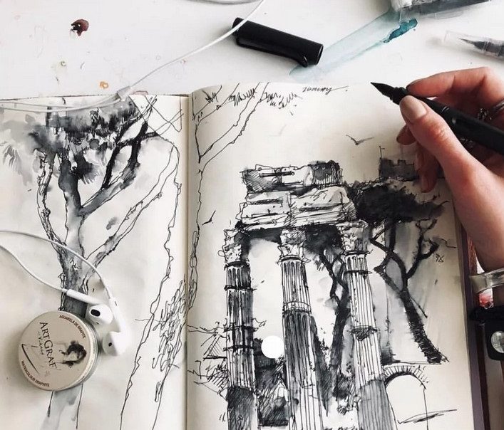 L'esquisse utilise différents outils et matériaux. Par exemple, l'encre est l'une des meilleures façons de dessiner. Il est idéalement combiné avec toutes les peintures, marqueurs et crayons. À première vue, il semble que ce soit une option plutôt ennuyeuse, mais après avoir travaillé avec pendant un certain temps, vous pouvez radicalement changer d'avis, car. cela ouvre de grandes possibilités pour le dessin.