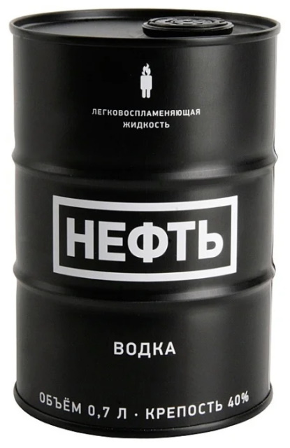 Les produits sont mis en bouteille dans des récipients originaux brevetés - des copies miniatures d'un baril de pétrole d'un volume de 0,7 litre.