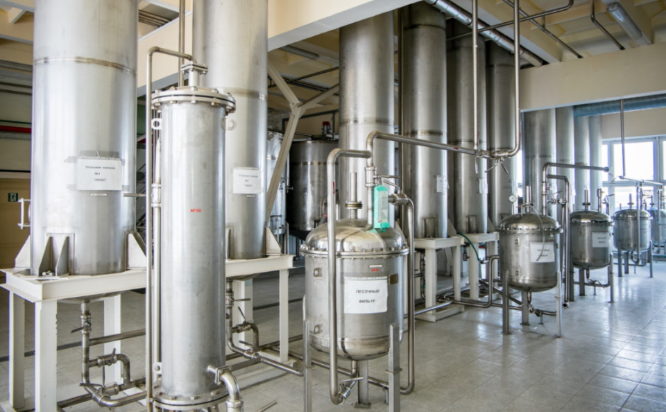 1. Traitement de l'eau - plusieurs niveaux de filtration utilisant du charbon, du sable de quartz, des ultraviolets ; décantation suivie d'une stabilisation des sels.
