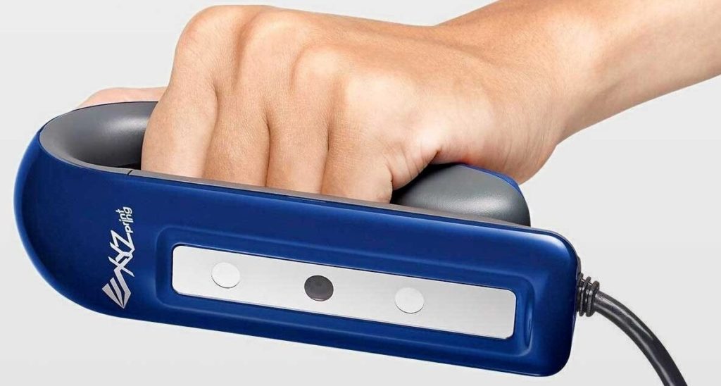 Type de modèle - portatif. Il a une forme incurvée. Il est utilisé lors de la numérisation d'objets de taille moyenne, de figures humaines. Il existe quatre modes de fonctionnement : un objet fixe, une figure humaine, un visage, une tête.