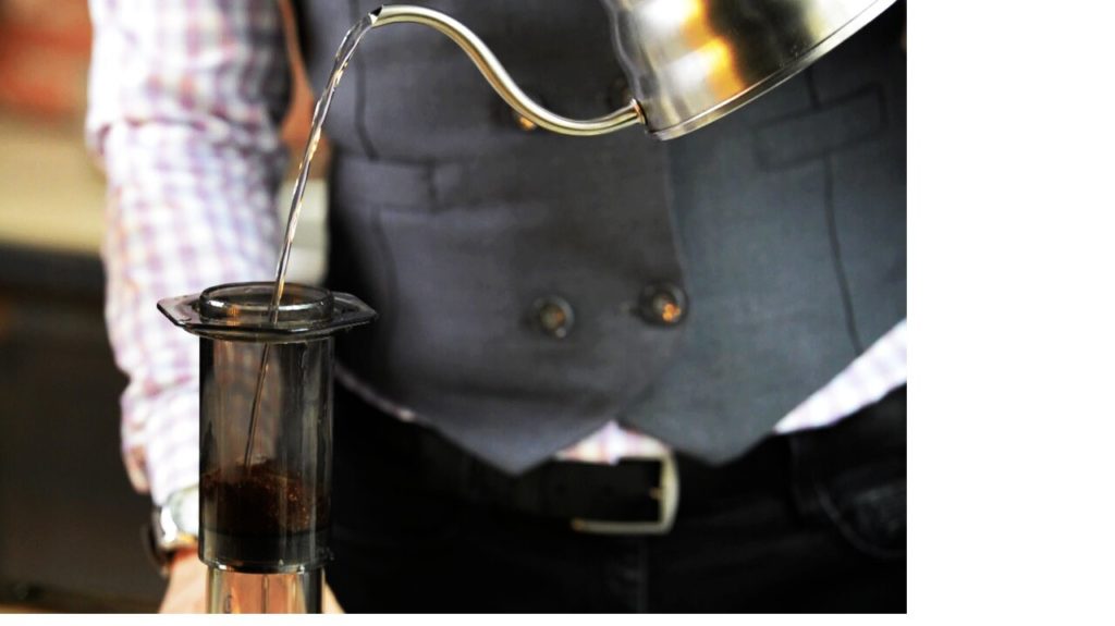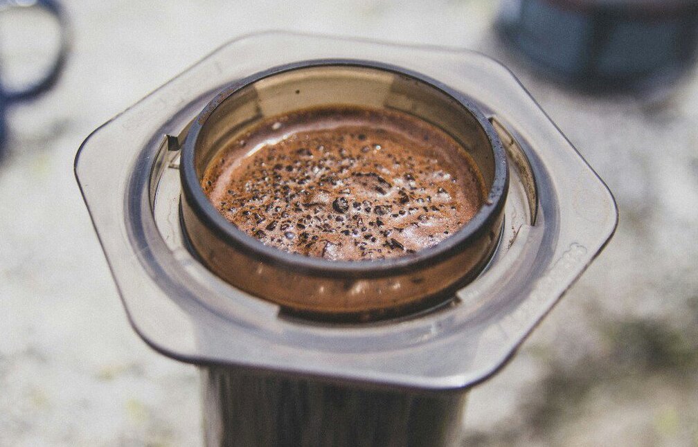Une caractéristique distinctive de l'Aeropress est le passage uniforme de l'eau à travers toutes les particules de café sous la pression du piston.