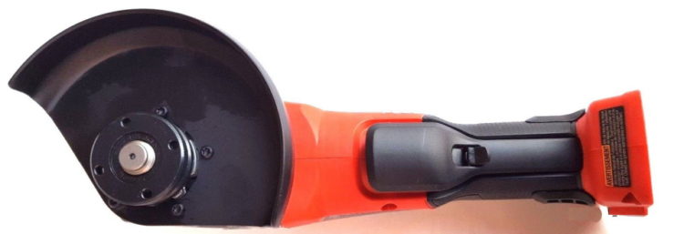Le boîtier a des inserts spéciaux pour éviter de glisser. L'équipement est changé avec une clé spéciale incluse dans le jeu de meuleuses d'angle. La poignée supplémentaire est installée dans trois positions sur le corps. Vous pouvez choisir vous-même la batterie, car elle n'est pas incluse dans le kit.