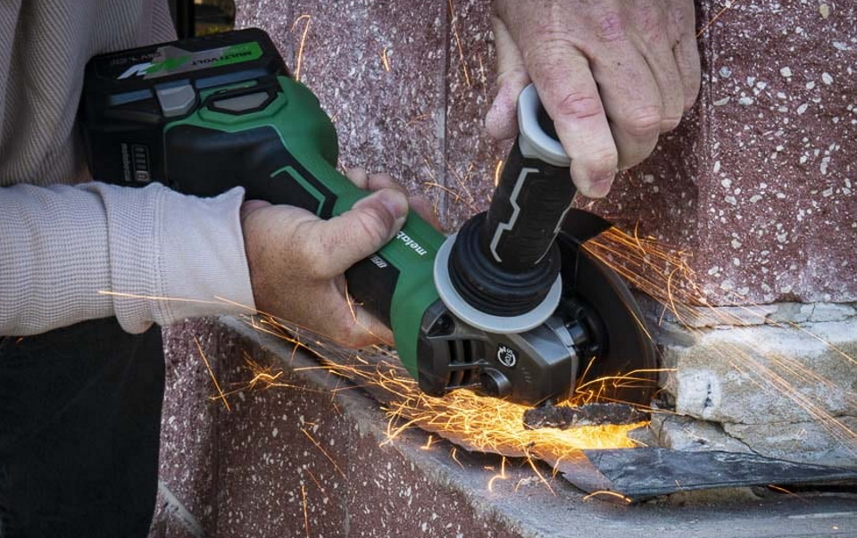Modèle de construction mobile fabriqué en Allemagne pour la coupe et le meulage professionnels de produits métalliques ou d'autres matériaux dans des endroits où il n'y a pas d'alimentation électrique. Des performances élevées et une longue durée de vie sont obtenues grâce à l'utilisation d'un moteur sans balais de haute qualité. La poignée principale rotative permet une utilisation dans des endroits difficiles d'accès.