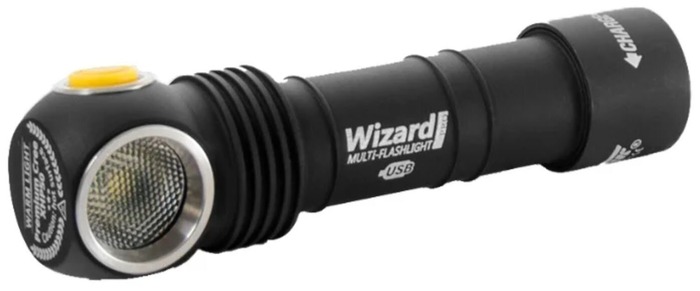 Lampe de poche spacieuse mais puissante Wizard Pro v3 XHP50, de la célèbre marque d'appareils d'éclairage.Il combine plusieurs modes de fonctionnement à la fois, dont un stroboscope, ainsi que la possibilité de transmettre un signal SOS.