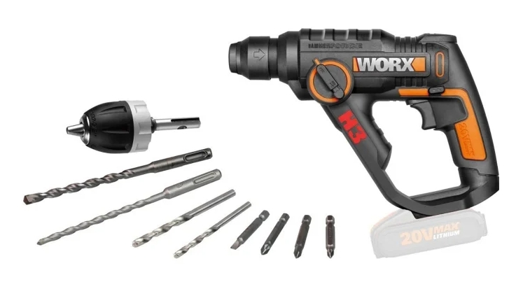 L'appareil multifonction "Worx" est l'un des plus légers et des plus confortables de sa catégorie. Il a un petit boîtier, mais cela ne l'empêche pas de combiner trois appareils à la fois : une perceuse à percussion, une déchiqueteuse et un tournevis. Malgré les petites dimensions, l'unité garantit une performance allant jusqu'à 5 000 battements / min, une puissance maximale de 1,2 joules. Le produit est idéal pour les activités avec des matériaux de dureté différente : bois, fer, béton et maçonnerie. En fixant la cartouche supplémentaire incluse dans le kit, le Worx se transforme en une perceuse-visseuse qui peut être utilisée pour serrer les écrous.