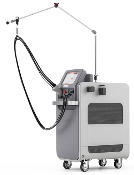 Un modèle universel qui combine avantageusement plusieurs options de fonctionnement (lasers à diode, néodyme, alexandrite). Vous pouvez épiler toutes les parties du corps, même les plus sensibles (la peau doit d'abord être préparée et refroidie). Les ampoules sont complètement retirées après 3 à 6 procédures, l'effet dure plusieurs années. Le modèle dispose de 2 connecteurs qui permettent de connecter simultanément deux pièces à main différentes à la plateforme. Un écran Android de 15 pouces est fourni avec des options de menu prédéfinies, une interface intuitive et conviviale. Le prix moyen de l'appareil : 2 700 000 roubles.