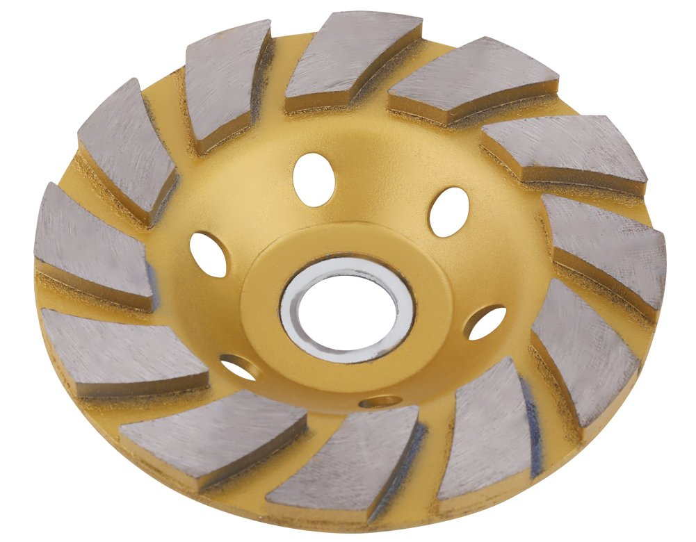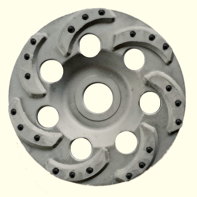 Conçu pour les meuleuses à main avec un siège de 22,2 mm. Sur la tasse, il y a des segments "Boomerang", qui sont recouverts d'un revêtement en diamant. Il a une caractéristique distinctive - une ressource accrue. De plus, le cercle supprime rapidement la couche supérieure du plan traité. Le plus souvent utilisé pour le meulage du béton.