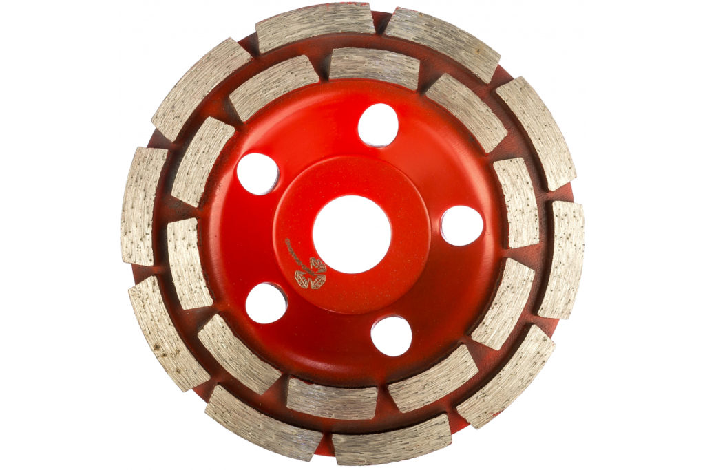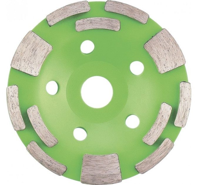 La conception à double rangée est pratique pour broyer le grès avec de la pierre. De nombreux constructeurs l'utilisent pour enlever l'excédent de chape. Cependant, avec cette tasse, il est impossible de faire un broyage fin. La surface devient rugueuse. Il peut être recouvert d'un autre matériau ou fini.Mais cela nécessitera une buse différente avec des caractéristiques différentes.