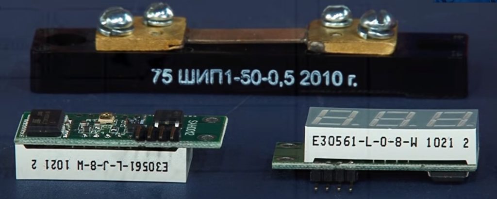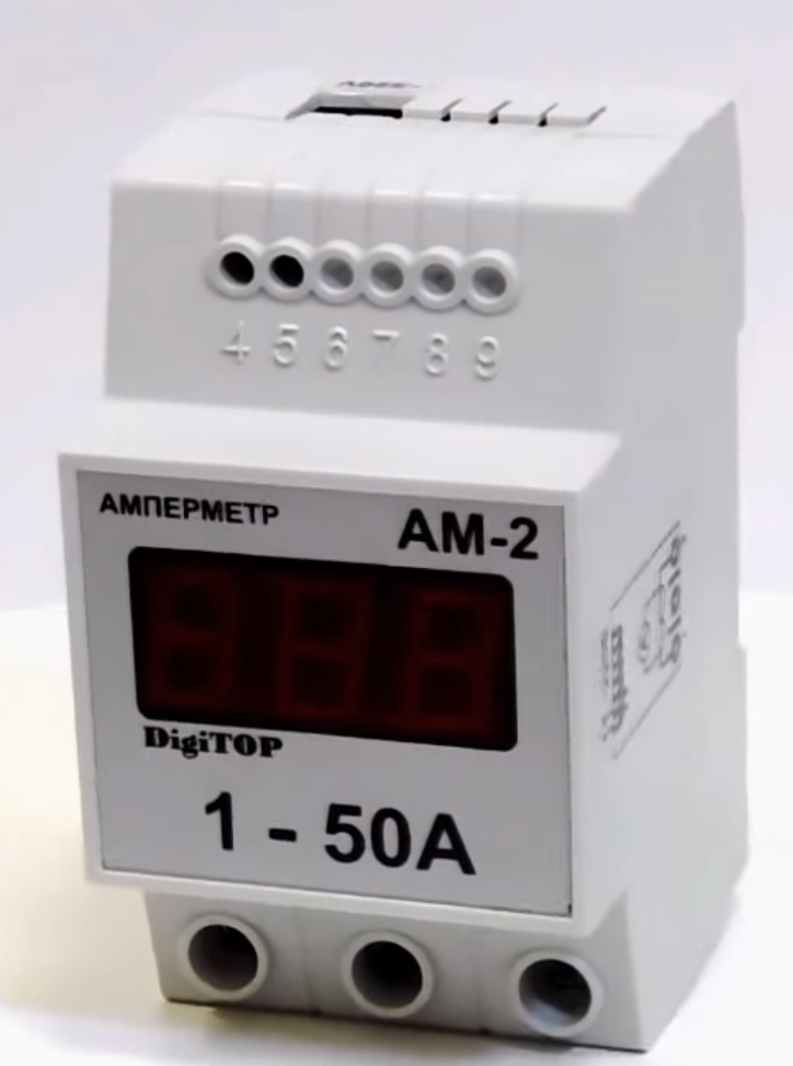À la 4ème place se trouve un ampèremètre numérique utilisé pour mesurer les indicateurs de courant alternatif avec une fréquence de 50 Hertz. L'équipement dispose d'un relais dont la commutation permet de l'utiliser avec différents transformateurs.
