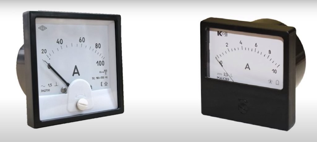 Cet appareil à pointeur obsolète avec une échelle est encore largement utilisé pour la recherche, par exemple, un ampèremètre à blindage utilisé pour étudier les réseaux CA triphasés et monophasés. Ces dispositifs sont divisés en deux groupes, différant par le mécanisme qui entraîne le pointeur indicateur :