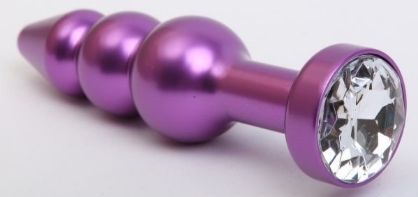 Un appareil pour partenaires expérimentés dans les plaisirs anaux. Il a un motif rayé sur toute la surface, une tête en forme de cône, deux autres éléments de travail sont ronds, de même diamètre. La plate-forme ronde plate a une circonférence égale à la partie la plus épaisse de l'unité.