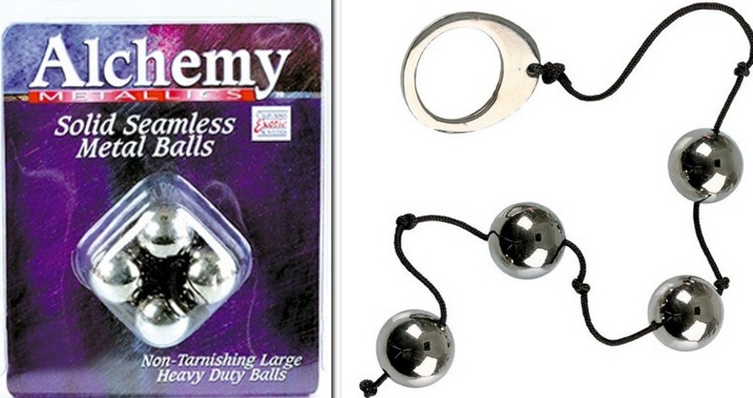 "Alchemy Metallics - Solid Seamless Metal Balls" du fabricant "California Exotic Novelties", l'apparence du produit et son emballage